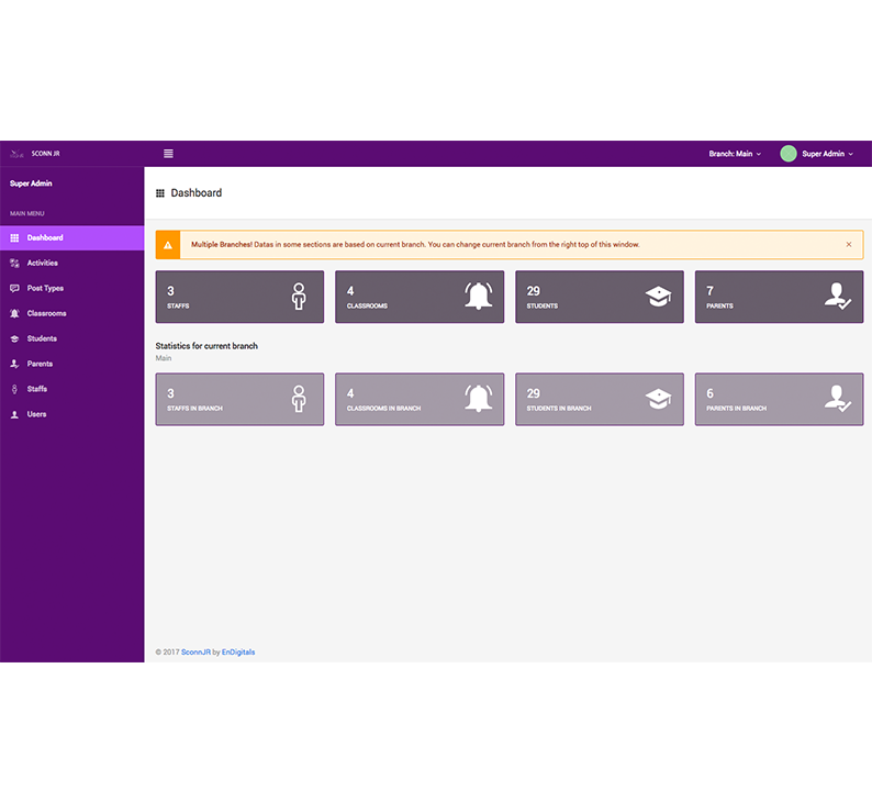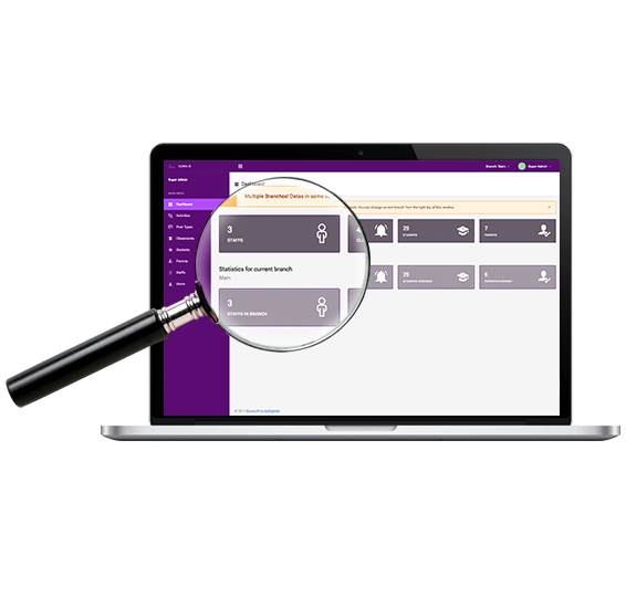 Moreover, managers are able to transit to the panel of all the other branches through managers panel and they can check data such as the number of classes, students and parents whenever they wish.